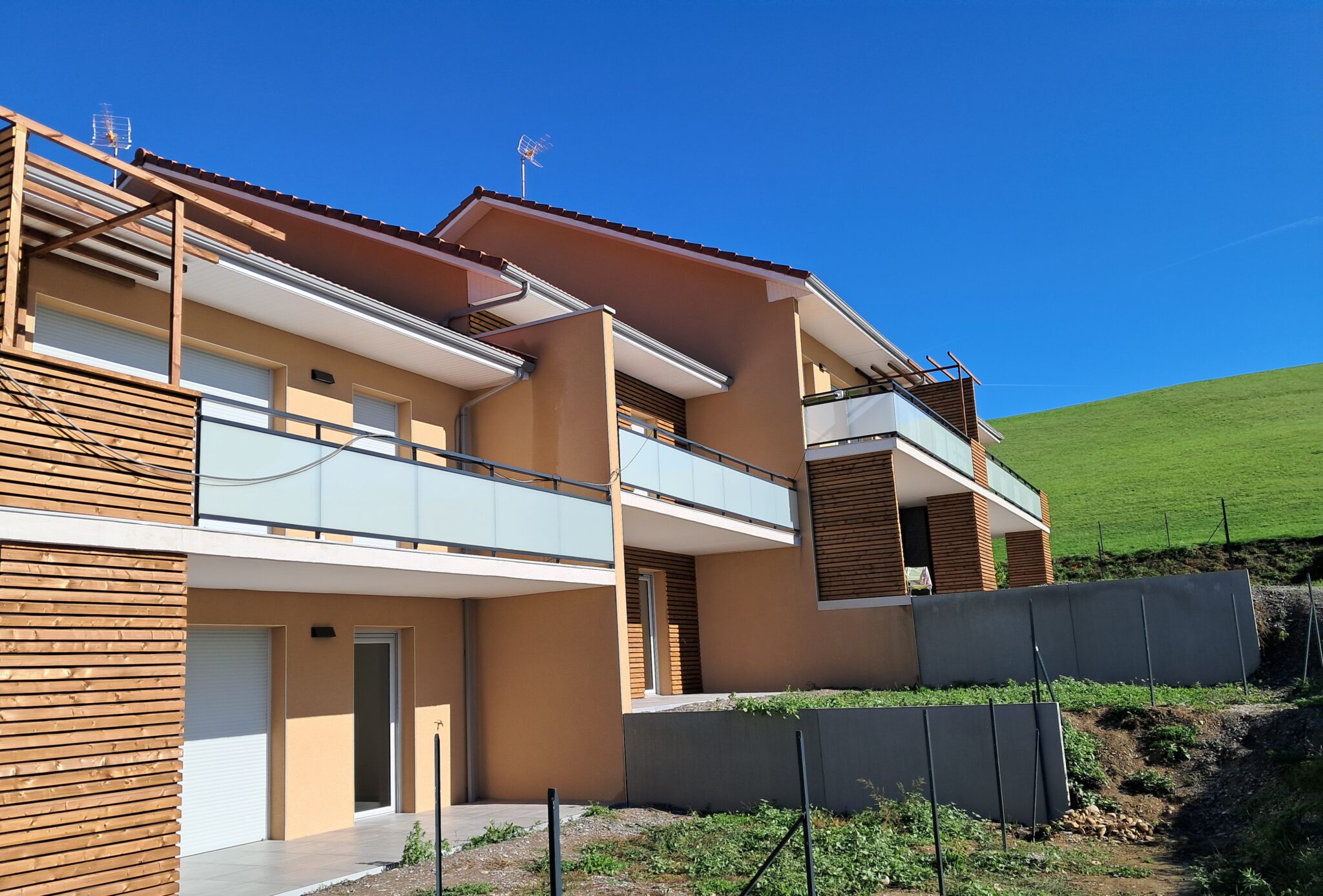 Cette résidence à l’architecture contemporaine se compose d’un petit immeuble collectif de 15 appartements ainsi que d’un collectif intermédiaire de 10 logements. Elle a été conçue pour offrir un confort optimal à ses habitants, en mettant l’accent sur l’économie d’énergie, la praticité, les stationnements, la luminosité naturelle et des espaces extérieurs agréables et conviviaux.